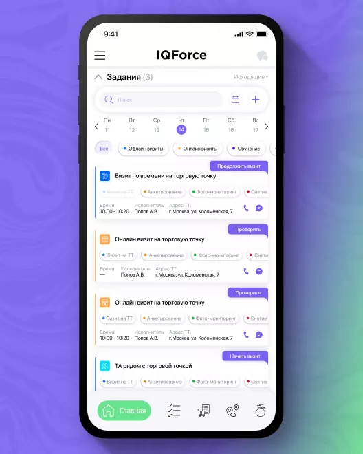IQ Force — инновационное решение для оптимизации работы торговых агентов, супервайзеров, мерчендайзеров и любых выездных сотрудников, объединяющее модульную CRM-систему, настраивающуюся под конкретные бизнес-процессы, и умные инструменты работы с маршрутами на основе Big Data и нейронных сетей AI.