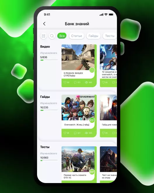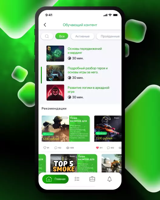 IQ Game предоставляет доступ к крупнейшей базе обучающих материалов лучших из лучших команд и тщательно подобранных тренировок по самым востребованным играм в различных жанрах (CS:GO, Dota 2, Fortnite и т. д.). Отфильтрованный контент от топовых игроков, лучшие лайфхаки и пошаговый разбор наиболее масштабных боёв делают процесс обучения структурированным и максимально простым. База топового контента постоянно обновляется, позволяя студентам IQ Game непрерывно расти. Участники получают возможность пополнять базу знаний видеозаписями своих боёв и разборами игровых моментов, монетизируя просмотры и продавая свои знания и опыт.