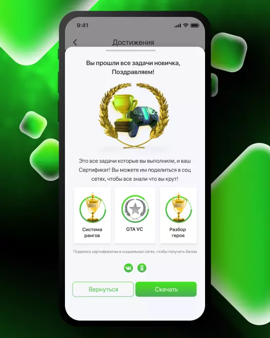 По итогам обучения пользователь сдаёт выпускные экзамены и получает диплом о прохождении курса. Из набранных во время обучения и экзаменов баллов формируется рейтинг лучших игроков IQ GAME, получающих возможность заливать на платформу свой обучающий контент, получая вознаграждение, а также претендовать на участие в масштабных турнирах, попадая в профессиональные кибер-команды.