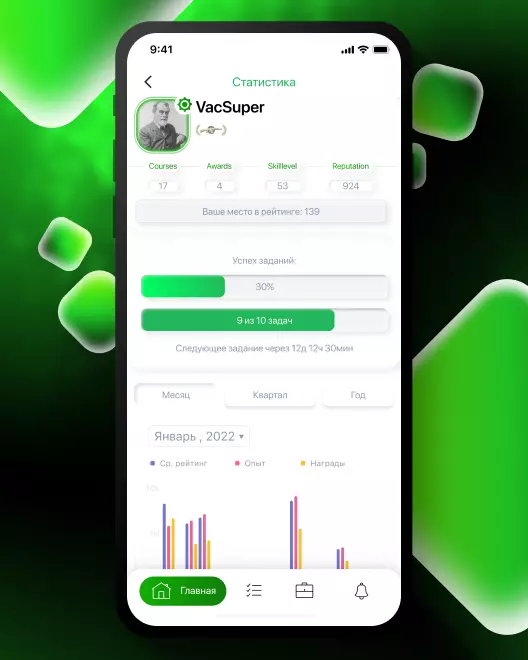 • Гибкая система настройки пуш-уведомлений по любым процессам: добавление нового курса обучения, проверка домашнего задания, старт нового турнира и т. д.