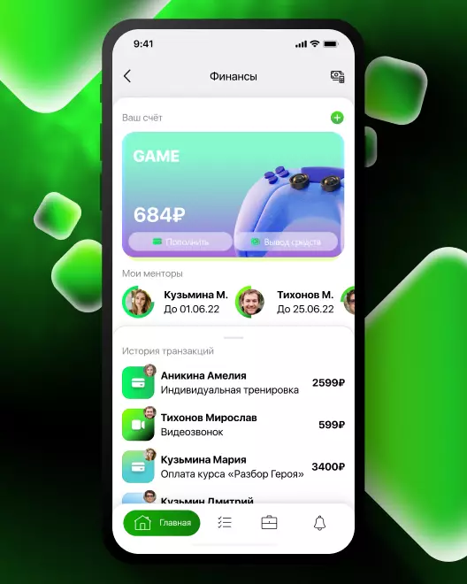 Оплата за приобретённые пользователями видео-курсы, индивидуальные тренировки, разборы домашних заданий и персональное сопровождение поступает на рассчётный счёт ментора.