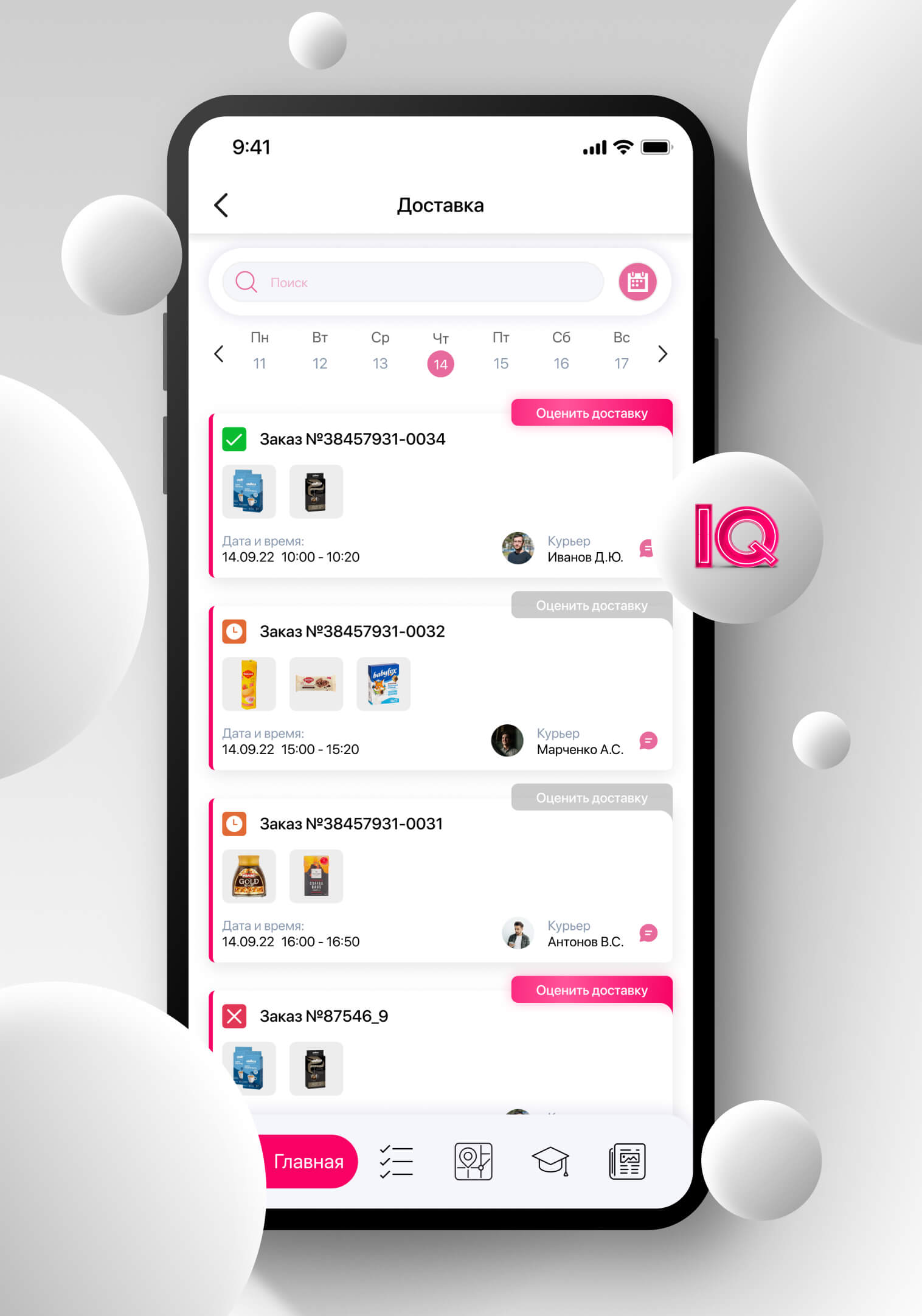 • Список текущих доставок с подробной информацией и возможностью связаться с курьером