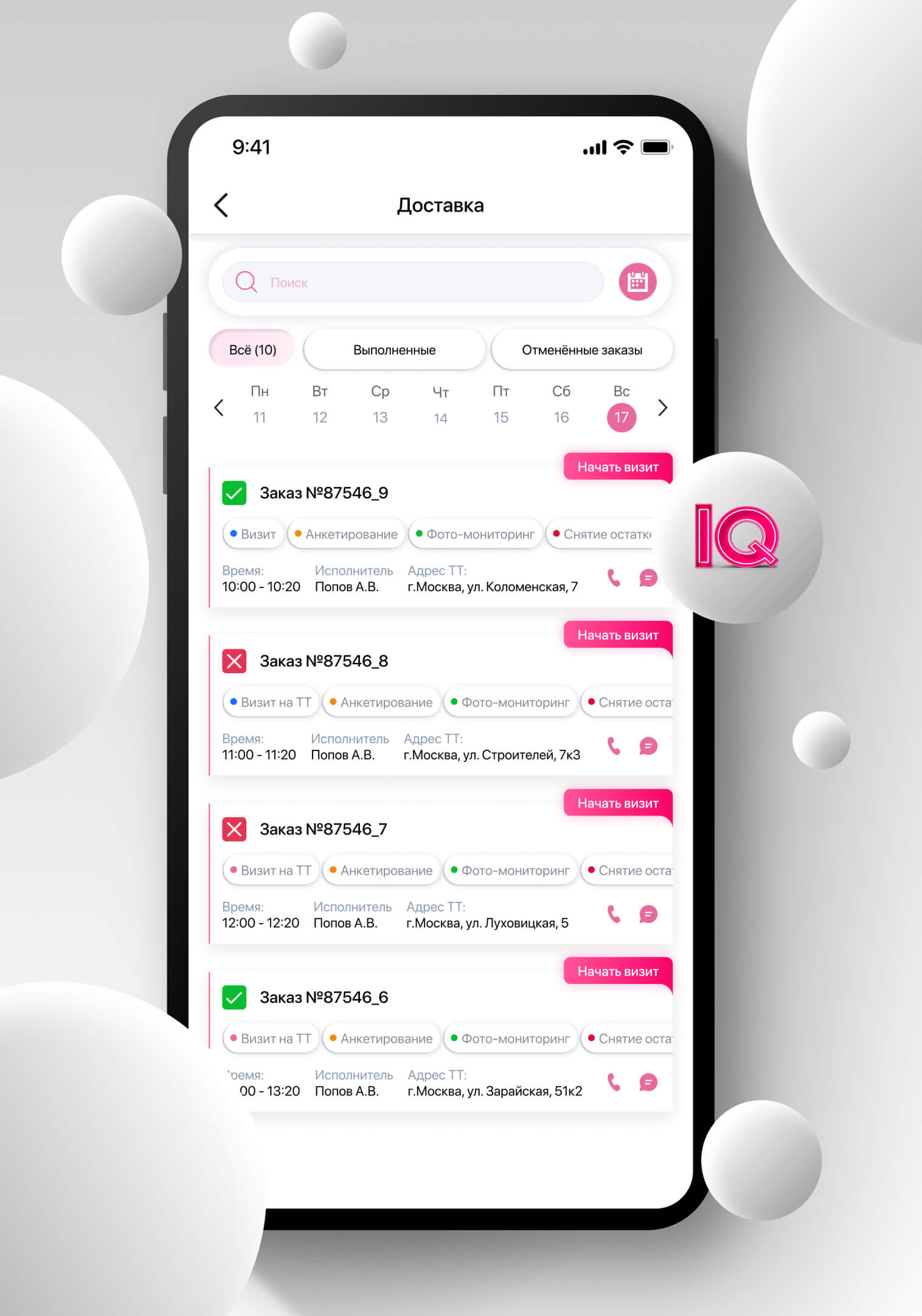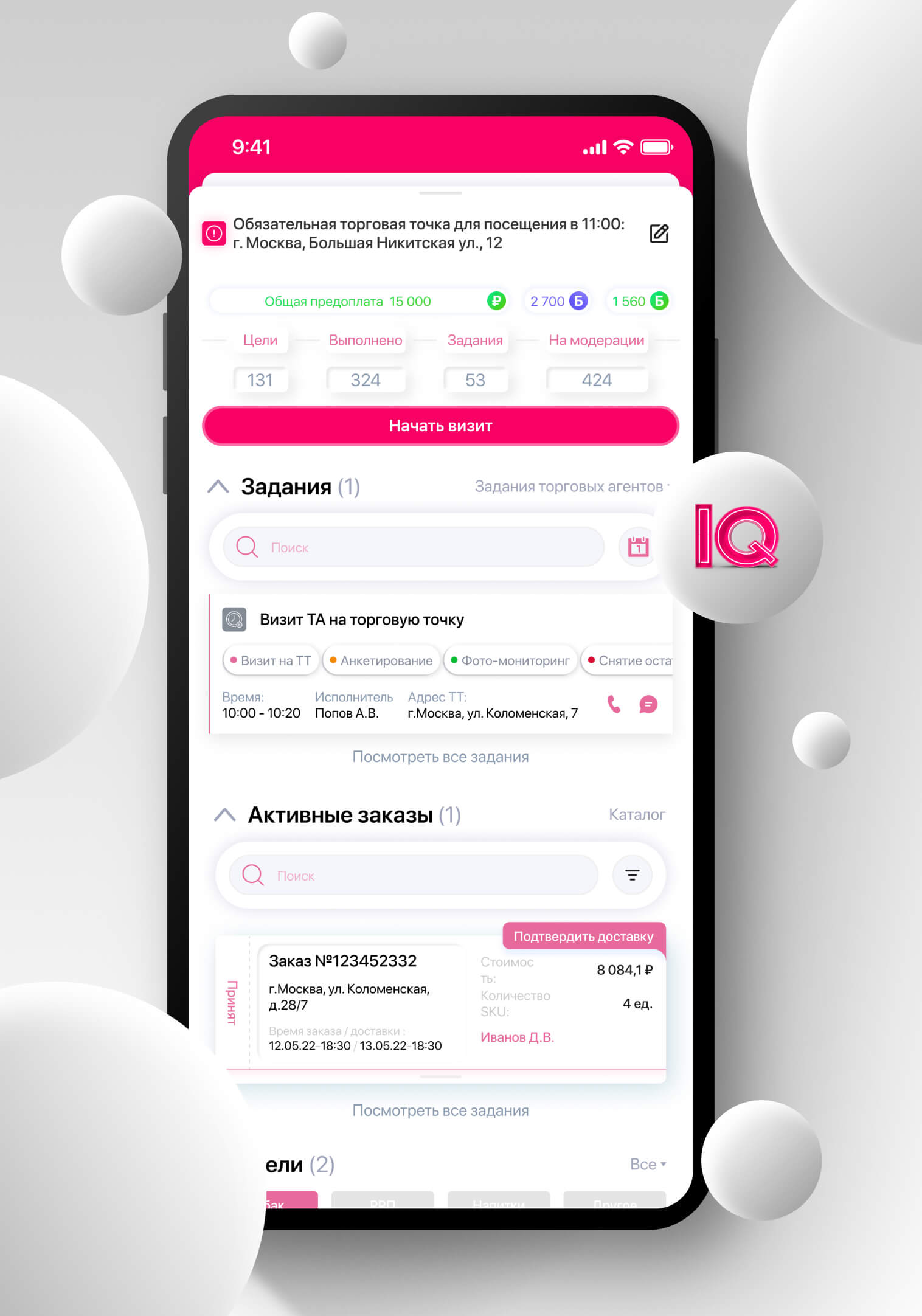 • Автоматическое фиксирование прихода сотрудника на объект и начало визита по геолокации