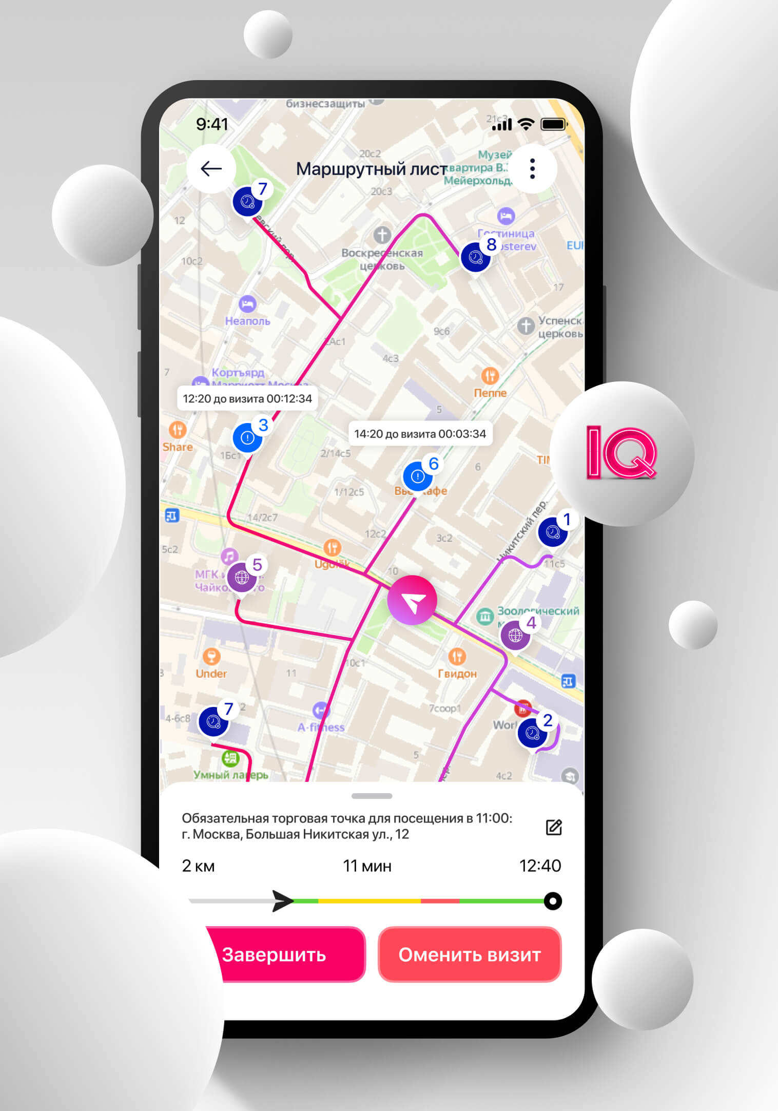 IQ Geo Tracking — готовый софт-модуль для выстраивания оптимального маршрута доставки в любой сфере бизнеса. Модуль оптимизирует и берёт под контроль работу любых выездных сотрудников: торговых агентов, водителей и пеших курьеров, экспедиторов и т. д.