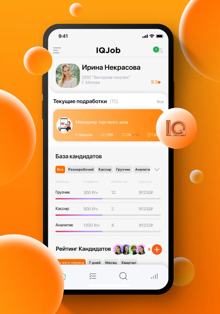 IQ JOB — удобный сервис автоматизированного поиска сотрудников по собственной базе, а также агрегация исполнителей с рекрутинговых площадок и соц. сетей на частичную занятость с почасовой оплатой для выполнения локальных задач в сфере ритейла по минимальной стоимости.