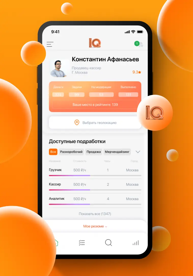 Подработки подбираются в соответствии с навыками исполнителей и по удобному графику. За выполненные задания начисляются баллы, формируя рейтинг добросовестности и увеличивая часовую ставку. Система геотрекинга укажет соискателю ближайшую локацию с доступными заданиями, проложит маршрут и зафиксирует приход сотрудника.