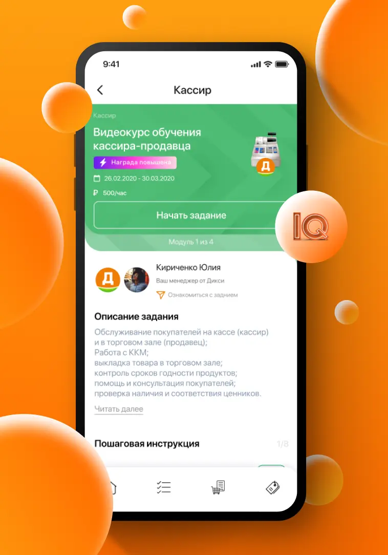 Будущие исполнители до выхода на работу узнают о требованиях компании, знакомятся с её ценностями, проходят начальное экспресс-обучение и автотестирование по выбранным заданиям на платформе IQ JOB, открывая для себя список доступных подработок. Таким образом, на заявки откликаются уже подготовленные сотрудники, готовые сразу же приступить к работе.