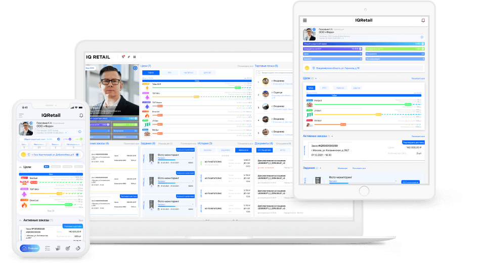 • Увеличение выполнения планов продаж и эффективности работы торговых агентов: 1 сотрудник с IQ Retail закрывает задачи 5 агентов без потери эффективности