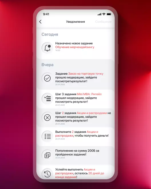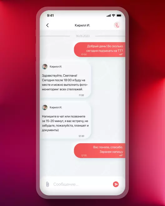 The connected task exchange in the chat format allows you to set tasks both for the clients field employees and for employees of partner retail chains, replacing personal visits to retail outlets with online control over the completion of assigned tasks - both automatically and in manual moderation.