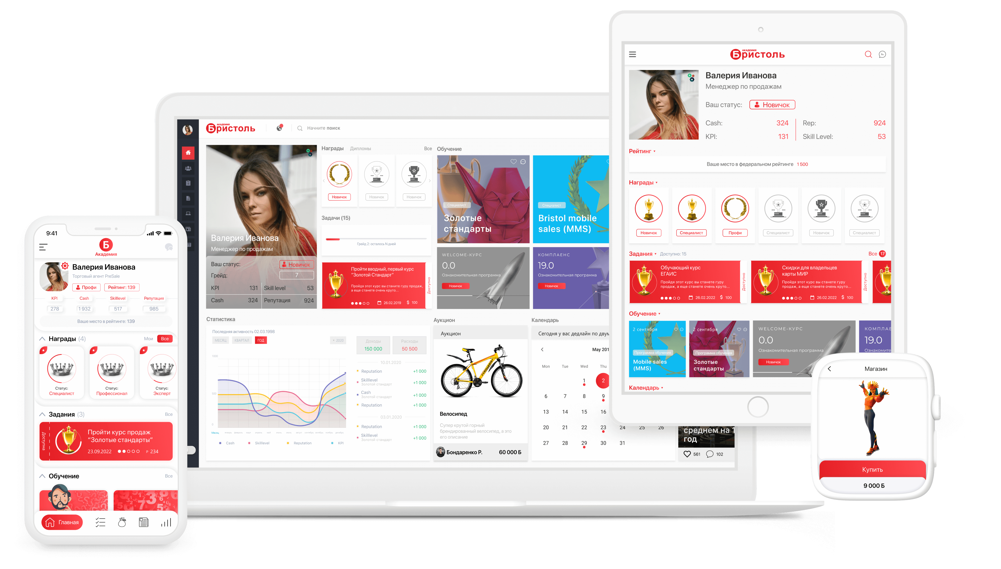 Сотрудники магазинов получают от руководства как задачи по изучению обязательных обучающих материалов, так и практические задания для для отработки полученных навыков на практике. За пройденные курсы и выполненные задания начисляются баллы, на основе которых формируется рейтинг лучших работников — федеральный (среди всех подразделений компании «Бристоль») и локальный (в отдельных регионах и магазинах).