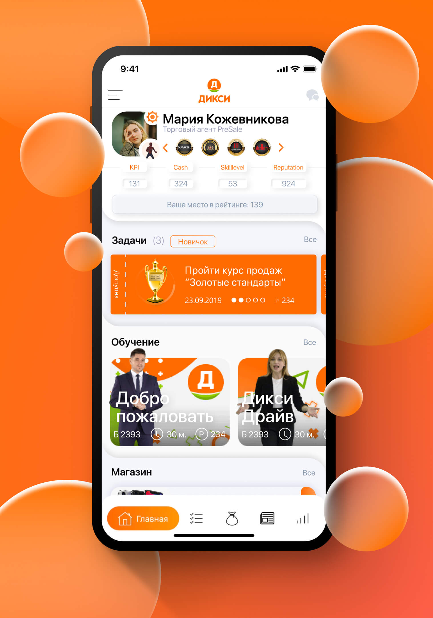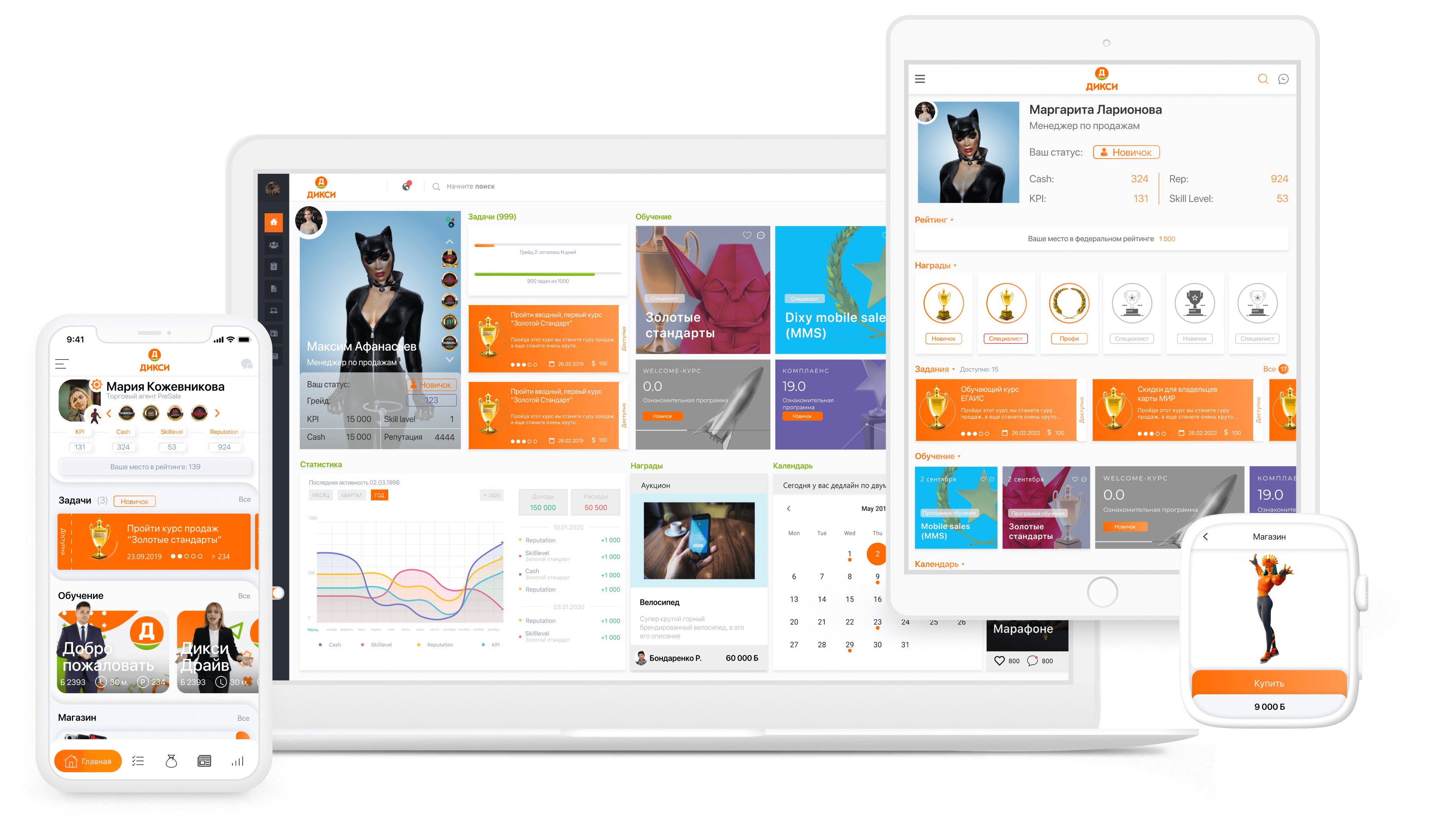 Сотрудники получают от руководства как задачи по прохождению обязательных обучающих курсов, так и практические задания для для закрепления и отработки полученных навыков на практике. За пройденные курсы и выполненные задания начисляются баллы, формирующие рейтинг лучших работников — федеральный (среди всех подразделений ГК «Дикси») и локальный (в отдельных регионах и магазинах).